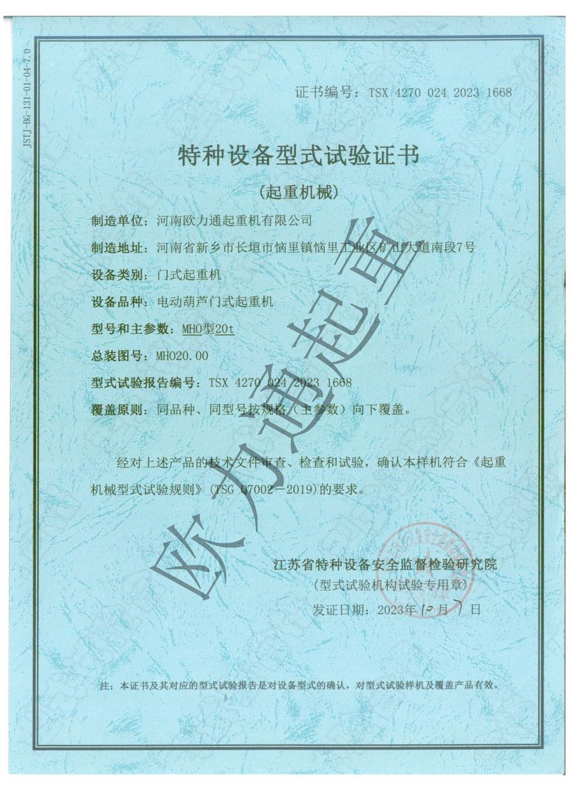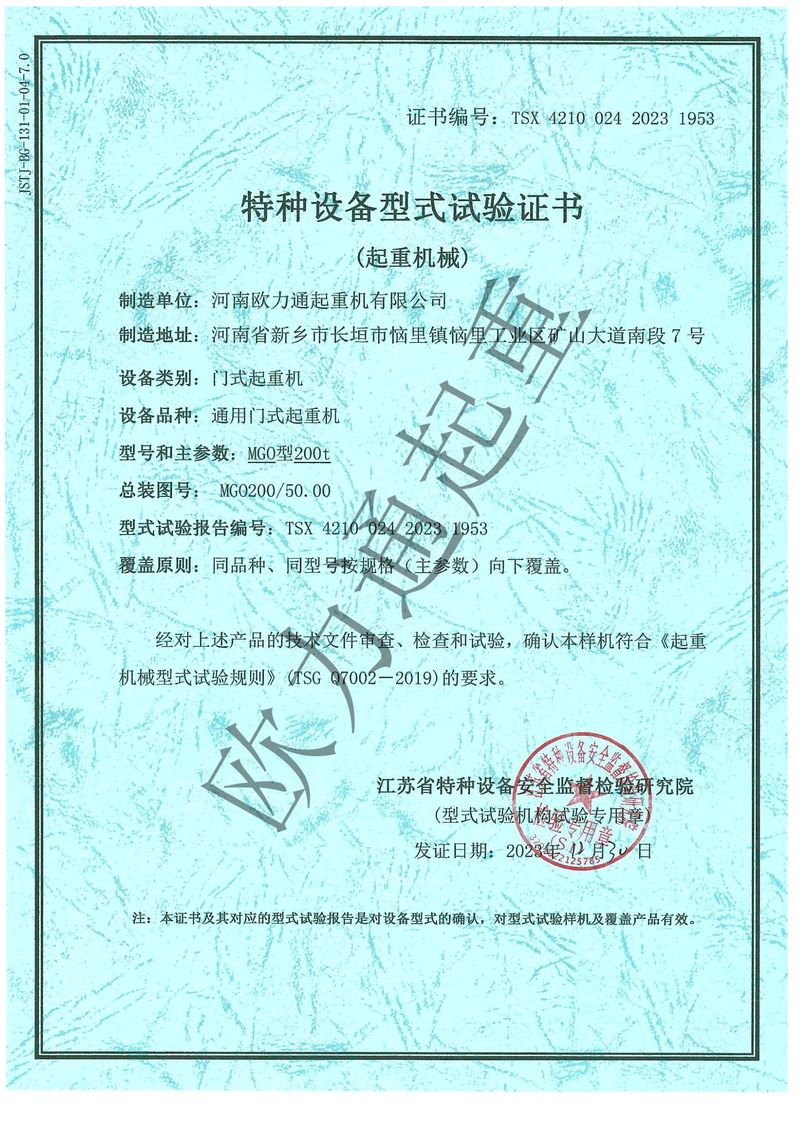 特种设备型式试验证书